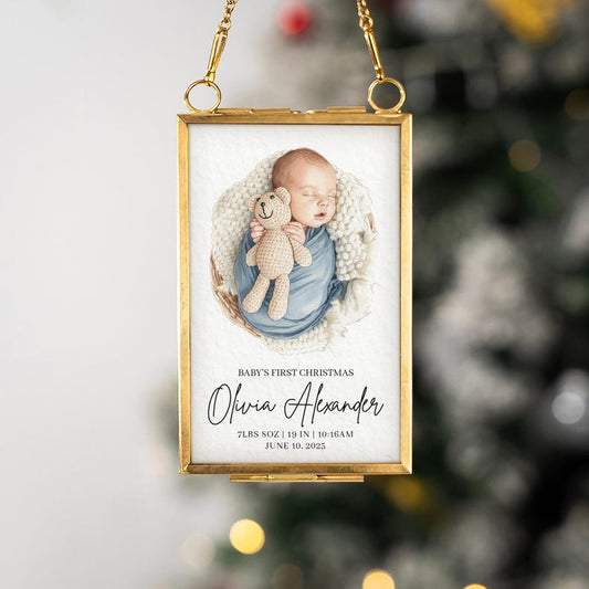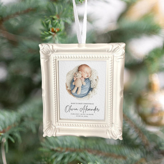 Personalized Watercolor Babys First Christmas Frame Ornament