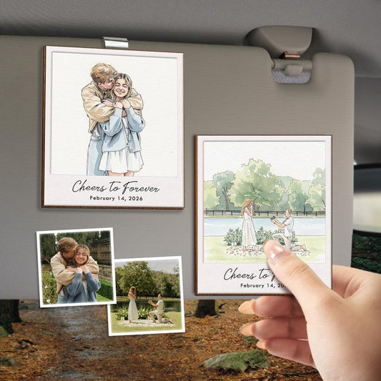 Personalized Hand-Painted Couple Photo Car Visor Clip