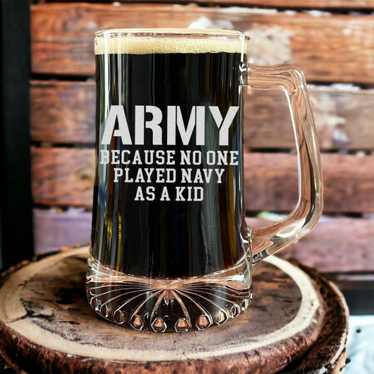 Army Because No One Played Navy As Kid Beer Glass with Handle