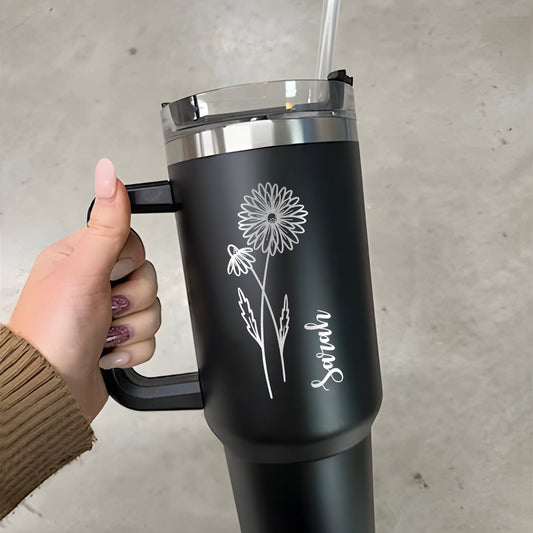 Custom Birth Flowers 40 oz Tumbler With Handle