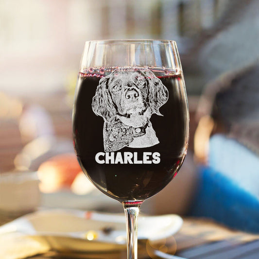 Custom Dog Photo Stemmed Wine Glass Engraved