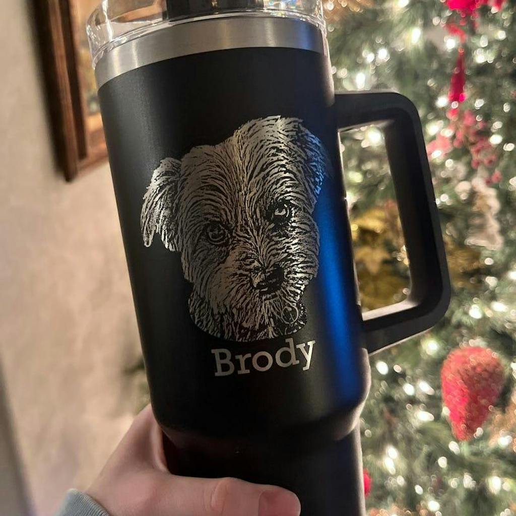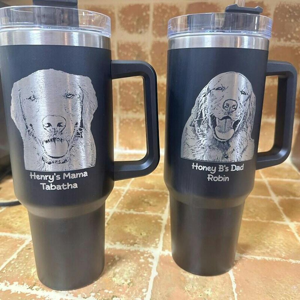 Custom Dog Photo 40oz Tumbler with Handle Engraved