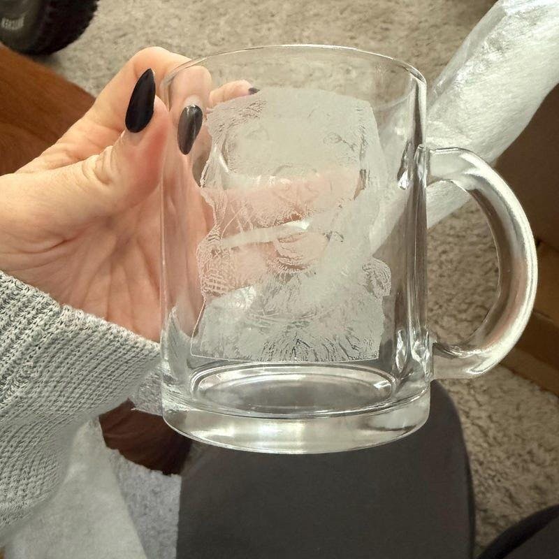 Celebrate your love for your furry friend with our Custom Engraved Dog Photo Coffee Glass. Personalized with your dog's photo, this 12 oz glass is the perfect gift for any dog mom. Enjoy your morning coffee with a reminder of your beloved companion.