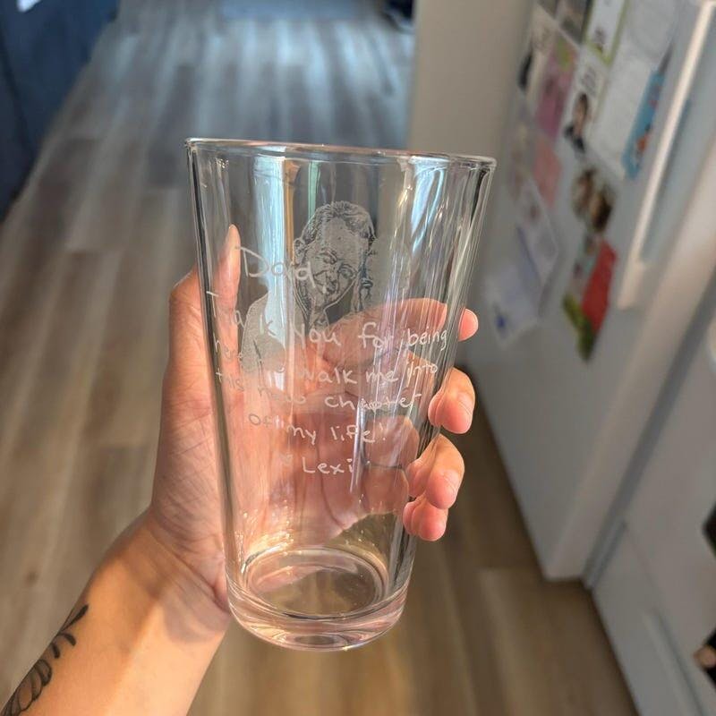 The "I'll Always Be Your Little Girl Financial Burden" Personalized Pint Glass is a perfect Father's Day gift, blending humor and heart for dads and daughters. This 16 oz glass features a funny laser-engraved message on the front, with a cherished photo beautifully engraved on the back. It’s a unique, sentimental keepsake that dads will love sipping from, celebrating their bond with every pour.