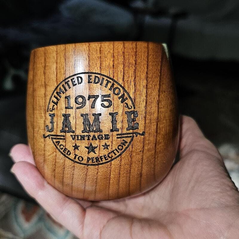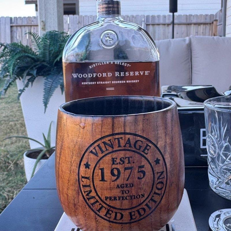 Celebrate in style with our Custom 50th Birthday Whiskey Glass! Made with vintage wooden bourbon cup, this glass is the perfect gift for any man or father. Cheers to another year with this special and unique present. Guaranteed to make any birthday celebration more enjoyable.