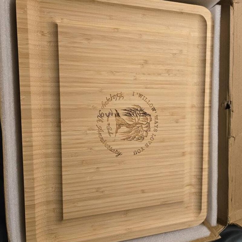 Celebrate nine years of love with our exquisite anniversary charcuterie board. This personalized marble cheese board, crafted from a stunning blend of natural wood and stone, is professionally engraved with the heartfelt message "I will always love you." It stands out as a unique 9th anniversary gift for him or your beloved wife, beautifully merging sentiment with function.