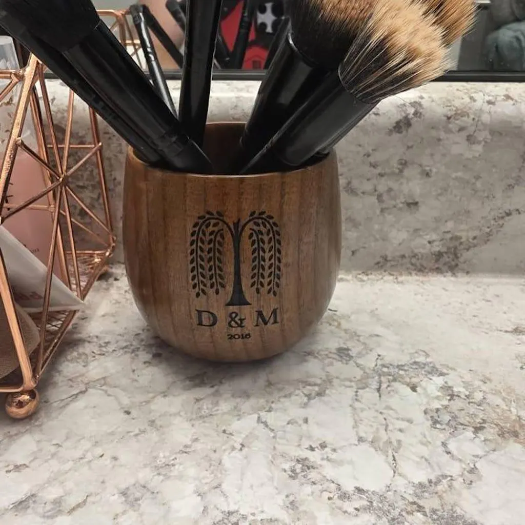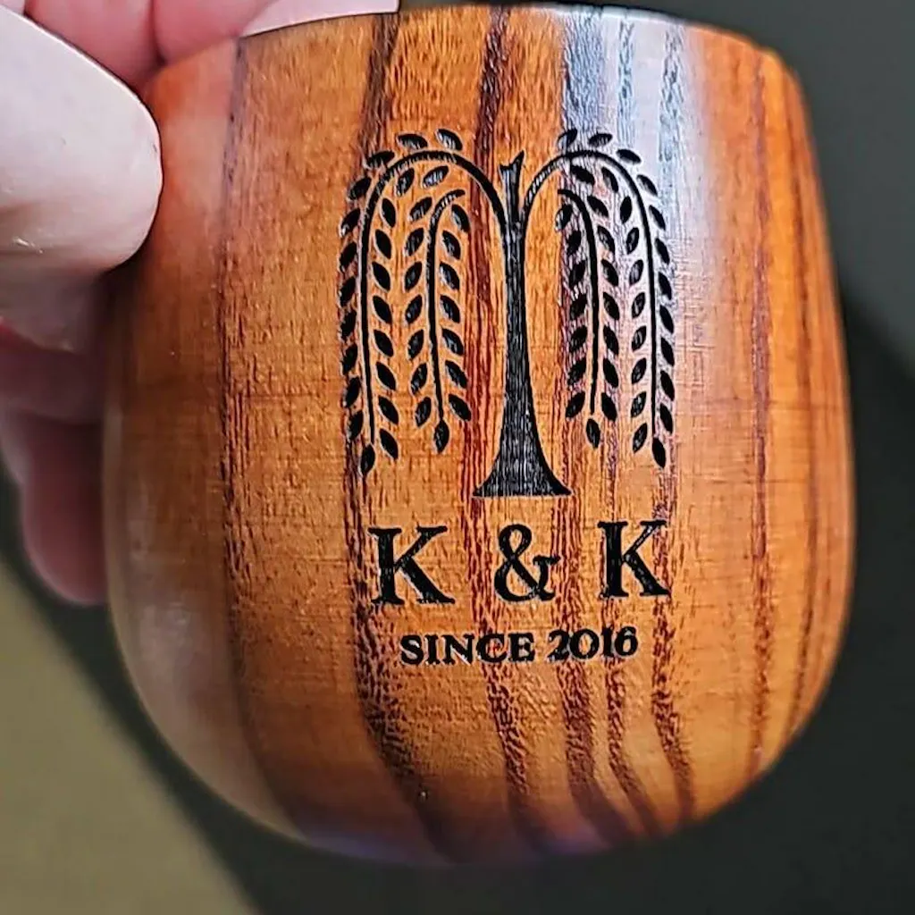 Celebrate your nine years anniversary with our personalized wooden whiskey glass. Made from willow and laser engraved with a custom design, it's the perfect gift for him. Enjoy a 10 oz pour of his favorite bourbon in this unique and thoughtful anniversary present. Cheers to many more years together!
