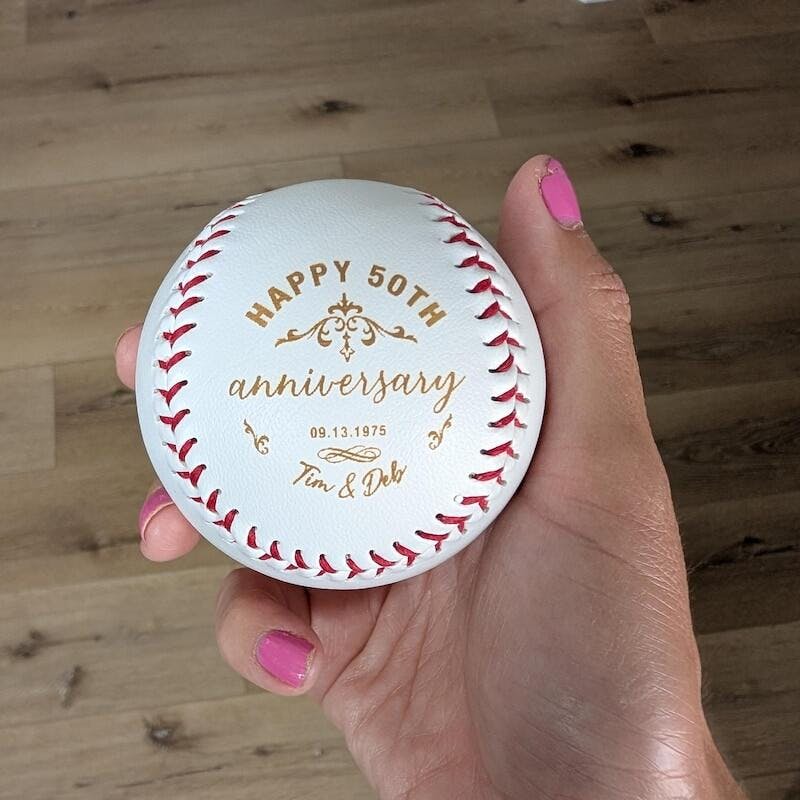 Celebrate your friends’ engagement with these custom baseball balls, designed especially for baseball-loving couples. Expertly personalized, they offer a unique and thoughtful gift that combines the excitement of the game with the joy of their upcoming wedding. This keepsake serves as a memorable token to honor their special milestone together.