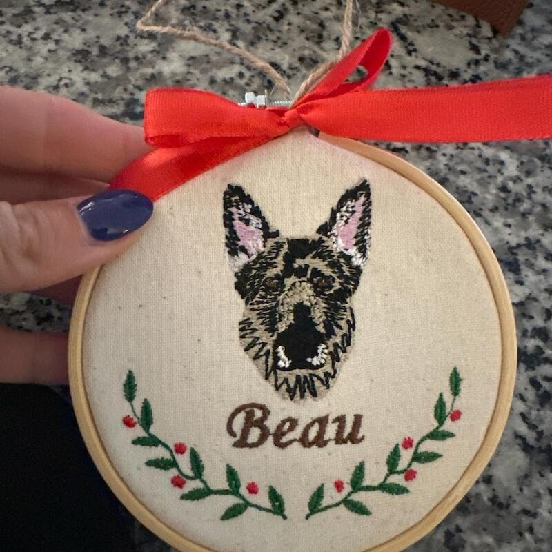 This Personalized Embroidery Dog Photo Ornament turns your dog’s photo into a beautiful stitched portrait in a hoop. A unique Christmas decoration and heartfelt keepsake, it’s the perfect gift for pet lovers who want to celebrate the bond with their furry friend during the holidays.