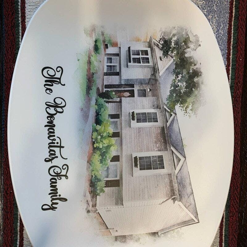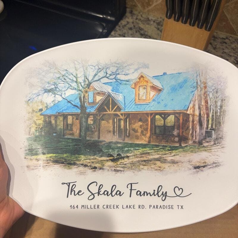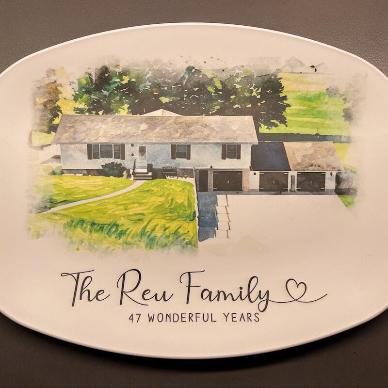 Looking for an unique decor for your new house or simple a meaningful housewarming gift? Check out our Custom Watercolor House Portrait Platter design. It's a perfect choice for you.