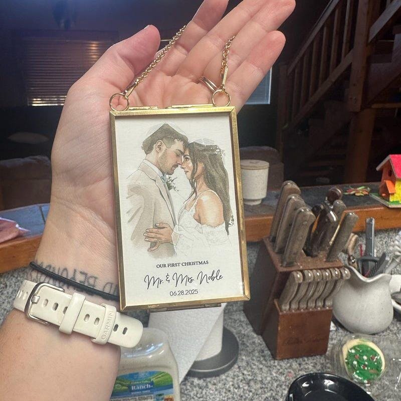Personalized Watercolor Portrait First Christmas Married Frame Ornament