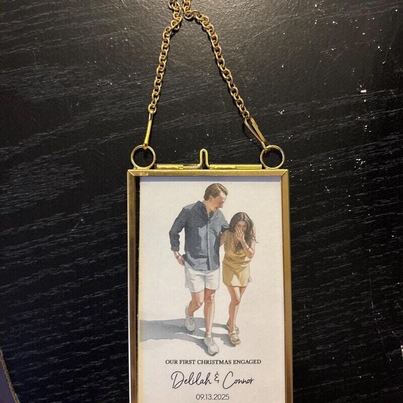 Celebrate love with this Personalized Couple Proposal Portrait Ornament. Crafted from your photo in a delicate watercolor style, this custom frame ornament makes a heartfelt keepsake for engagements, weddings, or Christmas tree décor.
